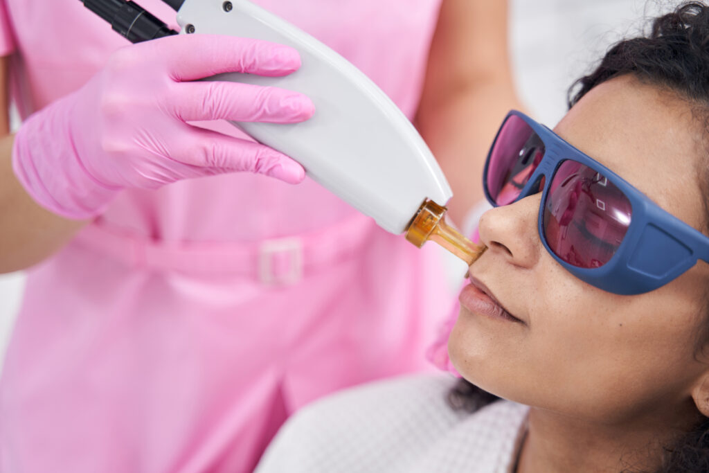 2. Εφαρμογή Laser: Το laser βαθμονομείται με ακρίβεια για κάθε δυσχρωμία. Μπορεί να αισθανθείτε ένα ήπιο τσούξιμο κατά τη διάρκεια της διαδικασίας.